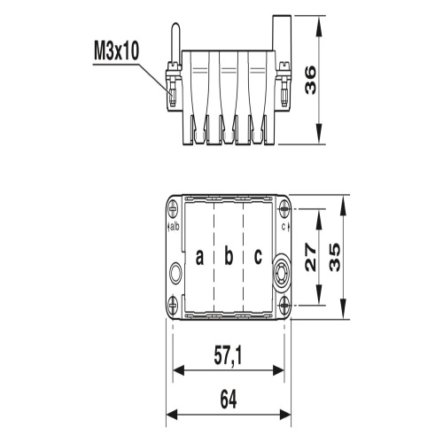 Phoenix Contact 1182088 A module carrier frame with a size of B10 and designed specifically for panel mounting on the sides (a, b, c, etc.) is available in two versions, one with a cross-sectional area of 4mm² to another with an increased area of 6mm², both tailored for use as a module carrier frame.