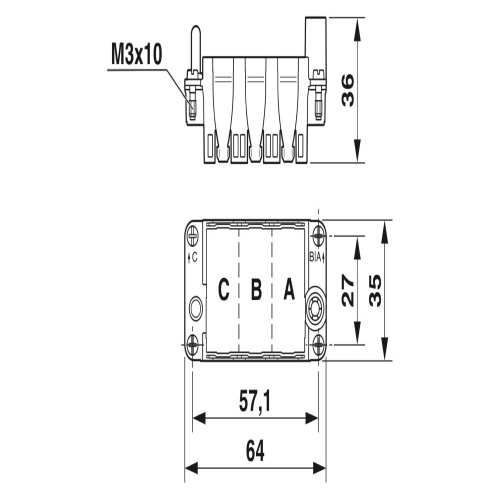 Phoenix Contact 1182089 The module carrier frame is available in a range of sizes, with this particular option falling under the category for the sleeve side and is sized at either 4mm² or 6mm², typically used for module carrier frames.