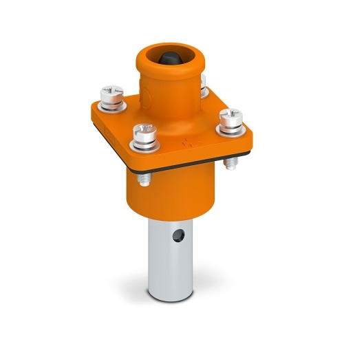Phoenix Contact 1228824 A specific connector is described with the following characteristics, it has a bright orange color and is used to connect in one position. The minimum cross-sectional area of its conductor is 16 mm2, while the maximum is 25 mm2, indicating it can handle various current levels. It's rated for high voltages up to 1500 volts and supports currents of up to 120 A, secured through a crimp connection method that utilizes a pin contact type.