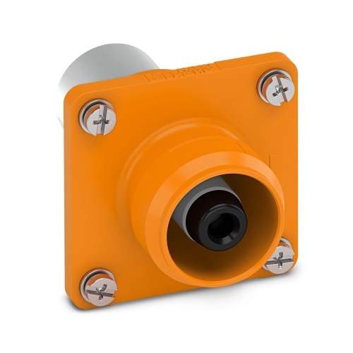 Phoenix Contact 1298078 The connector features an orange color and a single-position design with a minimum conductor cross-section of 95mm² and a maximum of 120mm². It is rated for a voltage of 1500V and can handle a current of up to 350A. The connection method used is crimp, with a pin-type contact configuration.