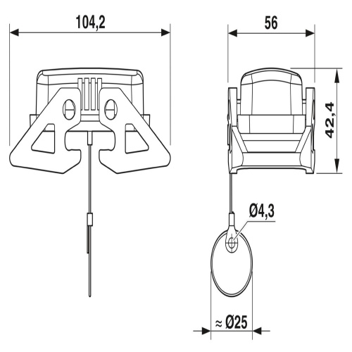 Phoenix Contact 1346530 The protective cover has a double locking latch for added security and is made from polycarbonate (PC) material, measuring 26.3mm in height, with a sealed design to prevent unauthorized access or contents from escaping.
