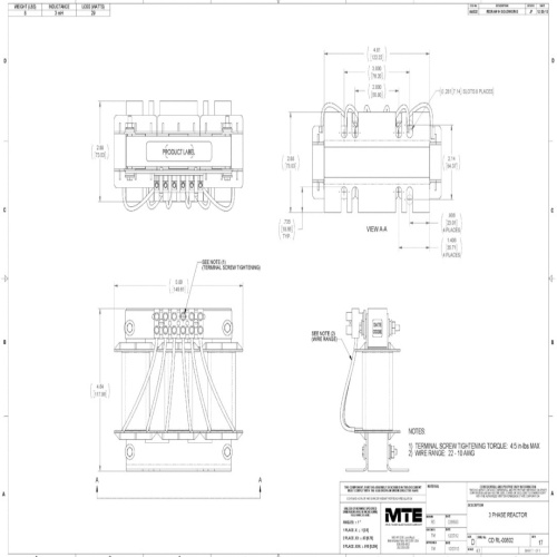 MTE RL-00802 Line & Load Reactor 480 Volt 3 Phase 5 Horsepower @ 3% Impedancewith open frame. Best in class rugged and robust line/load reactors with low watts loss. Highest continuous service factor with performance and durability unmatched by the competition.