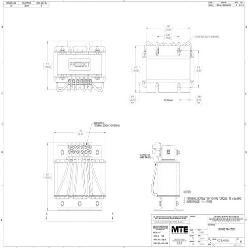 MTE RL-02503 Line & Load Reactor 480 Volt 3 Phase 15 Horsepower @ 5% Impedancewith open frame. Best in class rugged and robust line/load reactors with low watts loss. Highest continuous service factor with performance and durability unmatched by the competition.