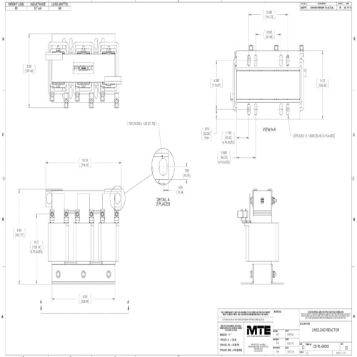MTE RL-08003 Line & Load Reactor 480 Volt 3 Phase 50 or 60 Horsepower @ 5% Impedancewith open frame. Best in class rugged and robust line/load reactors with low watts loss. Highest continuous service factor with performance and durability unmatched by the competition.