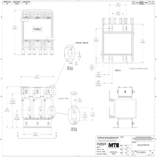 MTE RL-20003B14 Line & Load Reactor 480 Volt 3 Phase 150 Horsepower @ 5% Impedancewith open frame. Best in class rugged and robust line/load reactors with low watts loss. Highest continuous service factor with performance and durability unmatched by the competition.