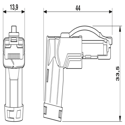Phoenix Contact 1407508 The specified network cable features a PROFINET and EtherCAT CAT5 connection with an advanced shielding technology and a shielded PVC/PVC green exterior, meeting the RAL 6018 standard. The cable has a straight M12 plug with D coding and is housed in a plastic housing that provides IP67 protection. It includes an angled RJ45 connector for IP20 protection, with a total length of 1 meter.
