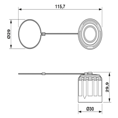 Phoenix Contact 1414728 A protective black plastic cap is designed to fit over the QUICKON connection and features a retaining cord to keep it securely in place, offering protection against water ingress due to its IP68 rating.