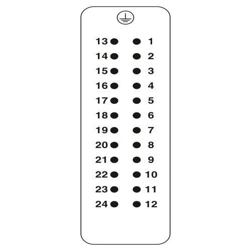 Phoenix Contact 1416358 A connector set consisting of 24 individual connections is available with a push-in connection system, utilizing wires with an American Wire Gauge (AWG) range of 26 to 14.
