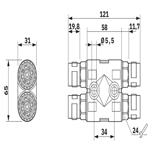 Flexible and compact - by connecting connections internally, H and T-distributors can be used to branch master cables or they can be used as star distributors