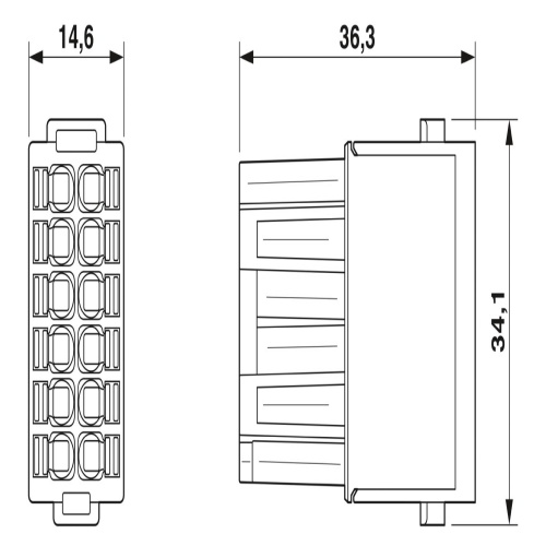Phoenix Contact 1424228 The contact module has a specific configuration with 12 insert positions, no power contacts, but 12 control contacts that use push-in connections, rated for 250 volts and 10 amps, with varying wire sizes of 0.14 mm2 to 1.5 mm2, intended for signal transmission purposes.