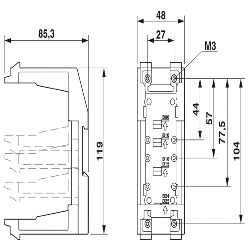 Phoenix Contact 1424338 DIN rail mounting frame, design: B6 - B24, for contact inserts, Base frame