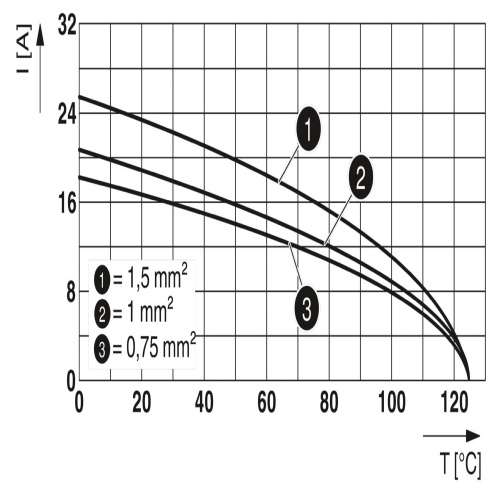 Phoenix Contact 1424449 The connector set features three push-in connections with a cross-sectional area ranging from AWG 26 to 16, indicating a range of wire gauges that can be connected using this system.