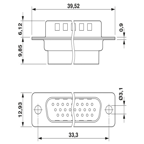 Phoenix Contact 1655195 A D-SUB contact carrier in the form of a shell size 2 is required for 26 signal contacts. It features contact pins that are suitable for crimp contacts, with a straight configuration. The component has a fixing hole of 3 mm diameter, allowing it to be securely attached to a panel mounting frame and sleeve housing designated as VS-15-.