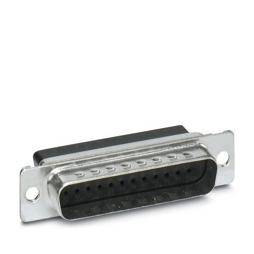 Phoenix Contact 1689954 For a D-SUB contact carrier with 25 signal contacts, the product has a shell size of 3 and is designed specifically for use with crimped contacts. The carrier features a straight layout and includes a 3mm hole for fixing, making it suitable for panel mounting frame and sleeve housing applications, as denoted by the VS-25... suffix.