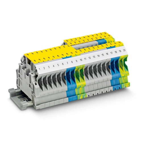 The warning labels snap into the screw and actuation shafts of the relevant terminal block