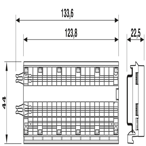 Phoenix Contact 1115674 An extension busbar with 20 slots is designed to connect and expand the CAPAROC system, suitable for mounting on a standard DIN rail configuration.