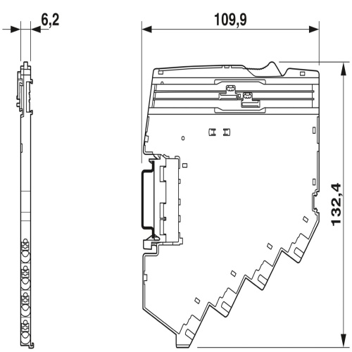 Phoenix Contact 1110987 A potential distributor designed to push-in connections allows for direct connection of the 0V return conductor in the CAPAROC system, facilitating easy installation on DIN rail through the use of the system's current rails.