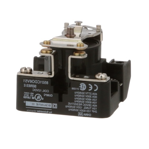 Schneider 8501CDO6V51 Square D Power Relay with 12 VDC Input Coil Voltage, 277V Output Load Voltage, 40A Load Amperage. SPST N/O with Panel Mount. Ideal for controlling single phase motors, pumps, conveyers, electric heaters and other applications.