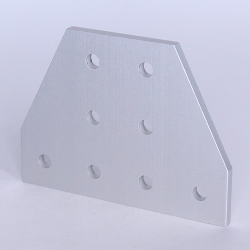 TSLOTS 653187 Anodized aluminum 10S 8 Hole Tee Joining Plate fastening method connects two extrusion profiles together at a 90-degree connection. This 8 Hole Tee Joining Plate doesn’t require any machining and engages the 2-degree lock feature for tightening assembly hardware