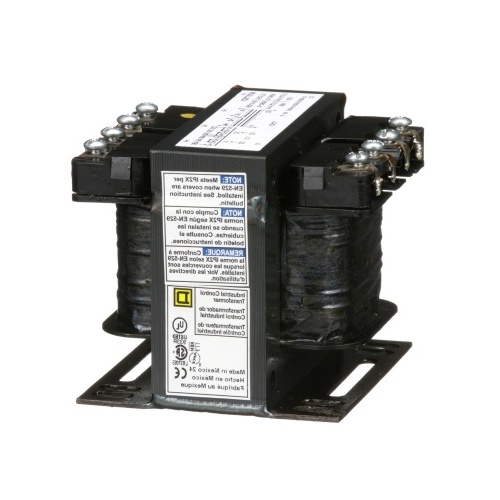 Square D 9070T75D1 Class 9070 Type T Transformer 75 VA Output (VACAmp). 240/480 VAC to 120 VAC OR 230/460 VAC to 115 VAC OR 220/440 VAC to 110 VAC. 2.89" x 3.38" x 3.34" (HxWxD). Low impedance windings for excellent VACage regulation. Accomodates high inrush currents from relays, starters, solenoids, contactors etc.