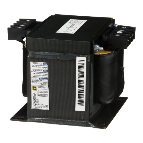 Square D 9070T1000D3 Class 9070 Type T Transformer 1000 VA Output (VoltAmp). 208 VAC to 120 VAC. 4.51" x 5.25" x 6.3" (HxWxD). Low impedance windings for excellent voltage regulation. Accomodates high inrush currents from relays, starters, solenoids, contactors etc.