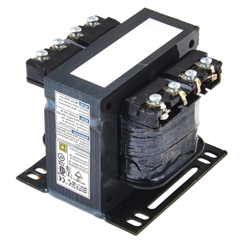 Square D 9070T150D5 Class 9070 Type T Transformer 150 VA Output (VoltAmp). 600 VAC to 120 VAC. 3.2" x 3.75" x 3.59" (HxWxD). Low impedance windings for excellent voltage regulation. Accomodates high inrush currents from relays, starters, solenoids, contactors etc.