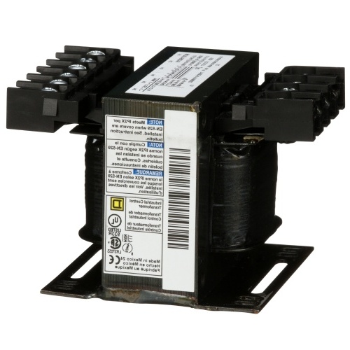 Square D 9070T150D19 Class 9070 Type T Transformer 150 VA Output (VoltAmp). 208/240/277/380/480 VAC to 24 VAC. 3.2" x 3.75" x 3.59" (HxWxD). Low impedance windings for excellent voltage regulation. Accomodates high inrush currents from relays, starters, solenoids, contactors etc.