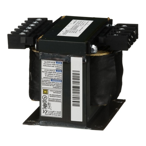 Square D 9070T250D19 Class 9070 Type T Transformer 250 VA Output (VoltAmp). 208/240/277/380/480 VAC to 24 VAC. 3.2" x 3.75" x 5.3" (HxWxD). Low impedance windings for excellent voltage regulation. Accomodates high inrush currents from relays, starters, solenoids, contactors etc.