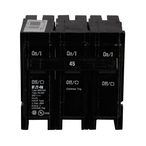 Eaton BRH345 - Thermal Magnetic Circuit Breaker - 240 Max Volt - 45 Amp - Three Pole