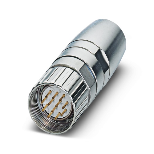 Phoenix Contact 1667895 This M23 cable connector has 17 positions and uses a standard screw locking mechanism for secure attachment. It features pin contacts and is crimpable, with no coding required. The connector is straight and shielded, and it's currently undergoing a transition to a lead-free alternative in compliance with RoHS II regulations, although a 6c version with less than 0.1% lead content can be provided upon request in advance.