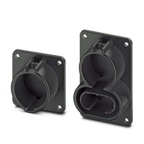 Phoenix Contact 1624139 The CHARX Connect is a type of charger connector holder that attaches to vehicles and comes in a black front mounting housing designed specifically for EVSE (Electric Vehicle Supply Equipment) at charging stations.