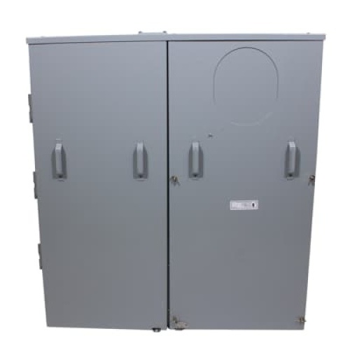 The TSDR840UFCU is a ringless, dual main breaker, meter socket and features spaces for 8, 1" breakers, a 400A, a copper bus, and a flush enclosure.