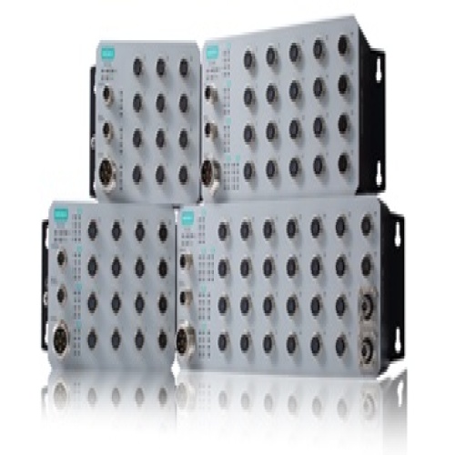 Moxa TN-4528A-16PoE-2GPoE-2GTXBP-WV-CT-T Conformal Coating Managed Ethernet Switch with 28 ports including 16 Fast Copper PoE ports M12 (100 Mbps), 8 Fast Copper ports M12 (100 Mbps) and 4 Gigabit Copper PoE ports M12 (1000 Mbps) with bypass relay, Extended Temp -40 to 75 C operating temperature, dual redundant power inputs 16.8 to 137.5 VDC (24-110 VDC). EN50155 certified ideal for railway applications. The ToughNet TN-4528A-16PoE-4GPoE Series M12 managed Ethernet switches are designed for railway applications, including rolling stock and wayside installations. The switches use M12 and other circular connectors to ensure tight, robust connections, and guarantee reliable operation in industrial environments where vibration and shock are commonplace. TN-4528A-16PoE-4GPoE Series Ethernet switches provide 24 fast Ethernet M12 ports with or without IEEE 802.3at/af compliant PoE (Power-overEthernet) function, and the Gigabit models have 4 Gigabit Ethernet interface with PoE function and with optional bypass relay function. The PoE switches are classified as power source equipment (PSE); they provide up to 30 watts of power per port, and can be used to power IEEE 802.3at/af compliant powered devices (PDs), such as IP cameras, wireless access points, and IP phones.