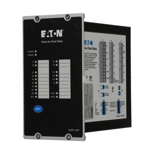 Eaton EAFR-110P - Arc Flash Relay, 5A, 1A, 80-265 Vac/dc, 2 high speed outputs (2 ms), Arc Flash,, 120-240Vdc, 125-250Vac, Normally Open, 50/60 Hz, Panel, 12 Max point sensors, 4 trip relays