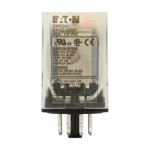 Eaton D3RR2A1 Plug In Unit-Ice Cube Relay - Double Pole - Double Throw - 110 Volt Coil, - Socket Mount - 10 Amp