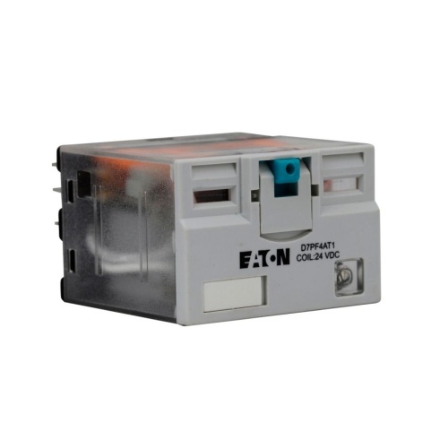 Eaton D7PF4AT1 - D7 Series, Full featured cover, 24 Vdc coil, 388 Ohms resistance, Plug-in terminal, Four Pole, Double Throw contact configuration, 15A contact rating, Silver alloy contacts, IP40 enclosure