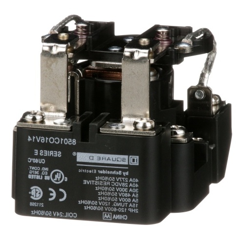 Schneider 8501CO16V14 Square D Power Relay with 24 VAC Input Coil Voltage, 277V Output Load Voltage, 40A Load Amperage. DPDT with Panel Mount. Ideal for controlling single phase motors, pumps, conveyers, electric heaters and other applications.