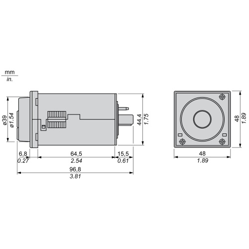 Schneider RE48ATM12MW Square D Zelio Relay Timing Relay with 24-240 VDC/VAC Supply Voltage, 5A Load Amperage. Output: 2 timed NO/NC contacts, timing range of 0.02 s–300 h. With funtion: Delay on energization.