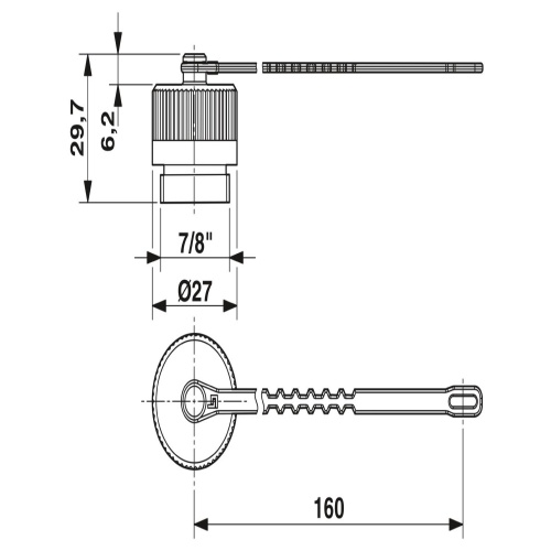 Phoenix Contact 1430925 A 7/8" plastic sealing cap features a fixing band and is designed to fit 7/8" socket sizes, making it suitable for securing sensor cables.