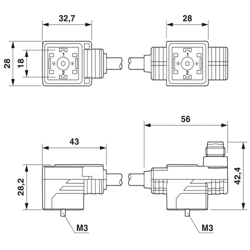 Phoenix Contact 1458114 The adapter is a universal double valve connector that features four positions, made from PUR/PVC materials in black RAL 9005 color, with a straight M12 SPEEDCON plug and coded "A" on Valve connector A. It includes one LED light source and has wiring configurations that incorporate both Z diode and Valve connector A setups, each with their own lighting setup, and the valve connectors are spaced just 0.15 meters apart.