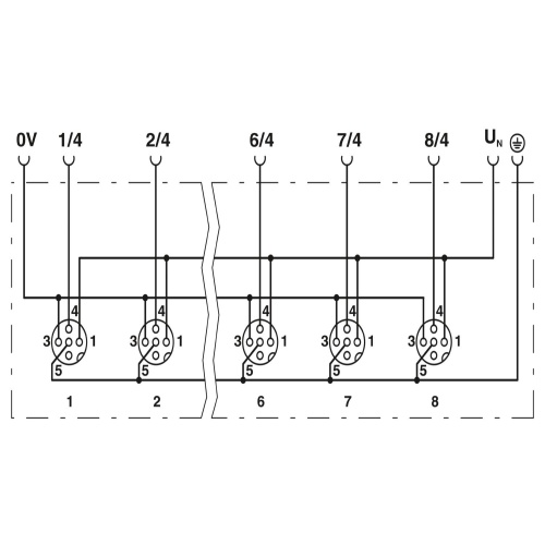 Phoenix Contact 1452398 A distributor box has a standard connection method using an M12 socket and is made of plastic, featuring four slots and positions. The box does not display status information and is available in Universal; master cable configurations with fixed connections at 180°, using PUR/PVC cables up to 5 meters long with no shielding.