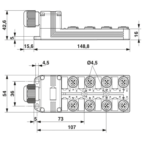 Phoenix Contact 1452903 Sensor/actuator box header - SACB-8/ 8-L-C GG SCO P, M12-SPEEDCON-socket Plastic, 4-position