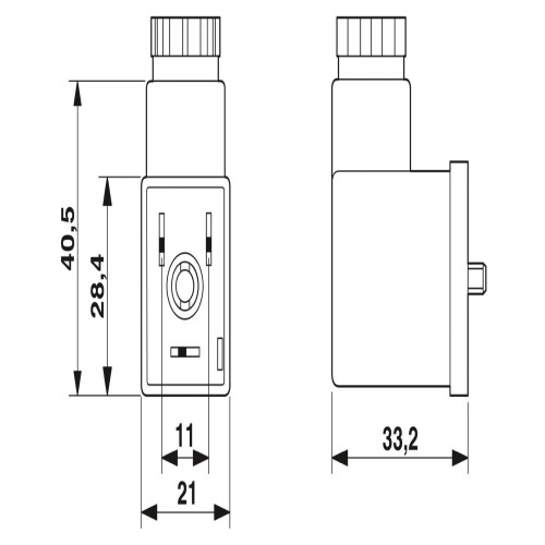 Phoenix Contact 1452233 The specified valve connector has a universal design with three positions and is compatible with the BI type. It features an 11mm male thread and uses a screw connection method for attachment. The connector also includes a cable gland with an M16 thread, suitable for external cables ranging in diameter from 6 to 8 millimeters.