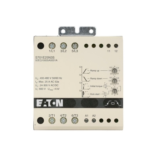 Eaton S701E25N3S - Mini soft starter, With DC injection brake, 25A, 400-480V line voltage, 24-240 Vac/dc control voltage, 11 kW