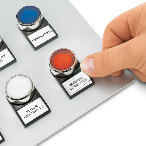 Phoenix Contact 0829535 The device has a sheet with touch protection and is transparent, but lacks a label, featuring a latching mounting type, accompanied by a single individual label positioned in a 15mm high and 27mm wide text field.