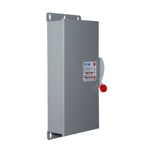 Eaton DH326NDKLW - Single Throw - 600 Amp - NEMA 12/3R - 240 VAC - Three Pole - Painted Steel - H fuses - 75-200 HP - Std. Fuse,Time Delay - 3PH - Lower Viewing Window, Enhanced visible blade - 63" x 23" x 12.75" (HxWxD)