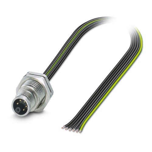 Phoenix Contact 1238542 The device connector features a rear mounting system and comes equipped with power capabilities. It has six positions for pins, arranged straight and utilizing the M12-Standard coding on the free end of the cable. The rear mounting is secured using an M16 x 1.5 screw. Individual wires are available, each measuring 0.5 meters in length and featuring a cross-sectional area of 1.31 mm2. These wires meet UL/cUL standards as stranded hook-up wire. The product also complies with RoHS II regulations regarding lead-free components, where the lead content is less than 0.1%.