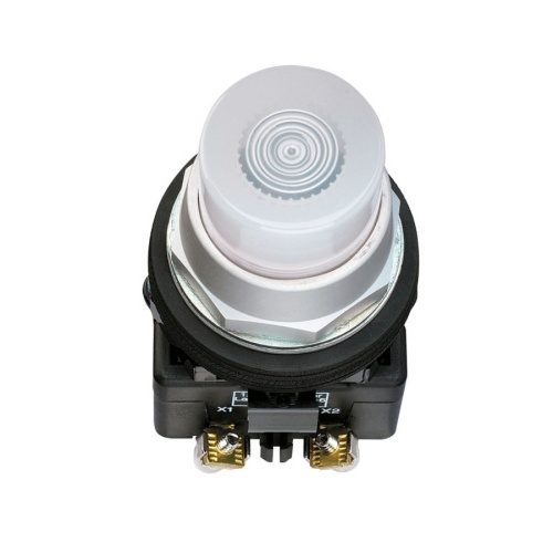 Eaton HT8GBYBV7 - Eaton's HT800 Series comprises a versatile family of 30.5 mm pushbutton devices, featuring momentary, illuminated, and mushroom head pushbuttons, selector switches, indicating lights, and push-pull switches. These devices boast a familiar appearance commonly found in industrial applications and can easily replace other manufacturers' 30.5 mm pushbutton devices. The HT800 devices come with numerous features, such as anodized aluminum mounting rings, watertight double V-gasket seals, extended height bulbs, transparent housing contact blocks, color-coded contact blocks, and gold-plated contacts (on low voltage contact block). The movable contact has a reliability ridge to prevent contamination buildup, and the screw-mounted contact blocks can be stacked. They offer versatile mounting options for contact blocks and field-convertible maintained selector switches. The series includes bright and long-lasting LED indicating lights in six colors, and the contact conditions are easily visible for inspection. The devices are corrosion-resistant with NEMA 4X finish and provide watertight and oiltight NEMA 4, 13 ingress protection. Furthermore, the selector switches are convertible and can be rotated in 22.5° increments to suit various panel layouts.