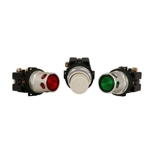 Eaton HT8GDCAT1 - Eaton's HT800 Series comprises a versatile family of 30.5 mm pushbutton devices, featuring momentary, illuminated, and mushroom head pushbuttons, selector switches, indicating lights, and push-pull switches. These devices boast a familiar appearance commonly found in industrial applications and can easily replace other manufacturers' 30.5 mm pushbutton devices. The HT800 devices come with numerous features, such as anodized aluminum mounting rings, watertight double V-gasket seals, extended height bulbs, transparent housing contact blocks, color-coded contact blocks, and gold-plated contacts (on low voltage contact block). The movable contact has a reliability ridge to prevent contamination buildup, and the screw-mounted contact blocks can be stacked. They offer versatile mounting options for contact blocks and field-convertible maintained selector switches. The series includes bright and long-lasting LED indicating lights in six colors, and the contact conditions are easily visible for inspection. The devices are corrosion-resistant with NEMA 4X finish and provide watertight and oiltight NEMA 4, 13 ingress protection. Furthermore, the selector switches are convertible and can be rotated in 22.5° increments to suit various panel layouts.