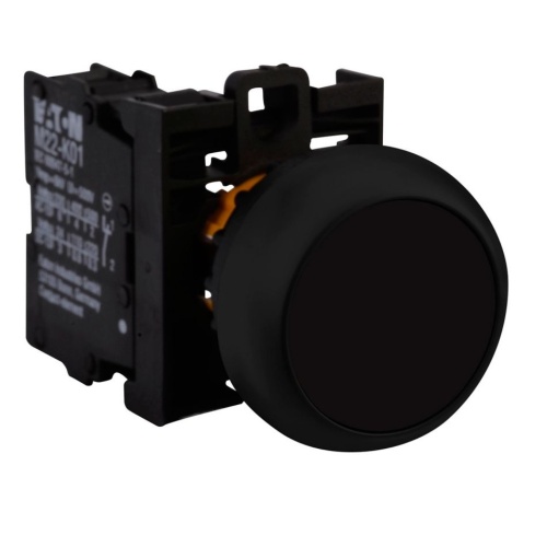 Eaton M22S-D-S-K01 - 22.5 mm RMQ-Titan Pushbutton,Black Actuator,Black bezel,1NC,IP67, IP69K,Non-illuminated,Flush mounting,NEMA 4X, 13,5,000,000 operations,Momentary,22.5 mm,Flush Pushbutton,M22 *NON-CANCELLABLE, NON-RETURNABLE*